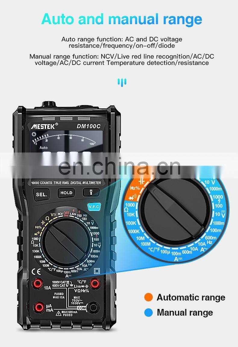 Mestek DM100B Digital Multimeter Button 10000 Counts AUTO Ranging Digital Multimeter AC/DC Voltage Ammeter Current Multimeter