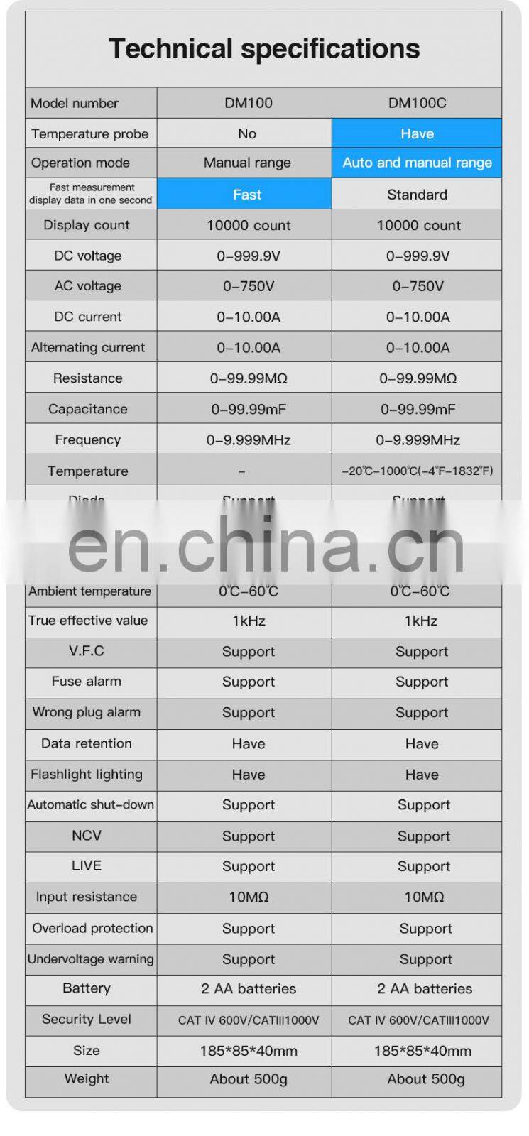 Original Manufacturer DM100B Auto True-RMS AC DC Voltage Current Ohm Capacity Multimeter With Voltage Detector Socket Tester