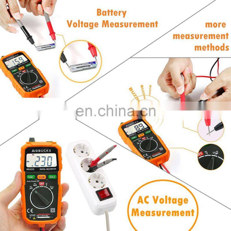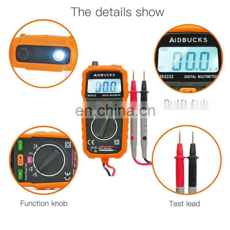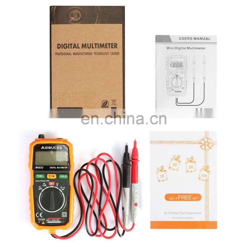 Home > Products > Multimeters > AIDBUCKS Digital Multimeter MS8232 AD DC Voltage 600V Handhold Multimeter Tester Backlight Rubber Case Smart Multimeter Digital