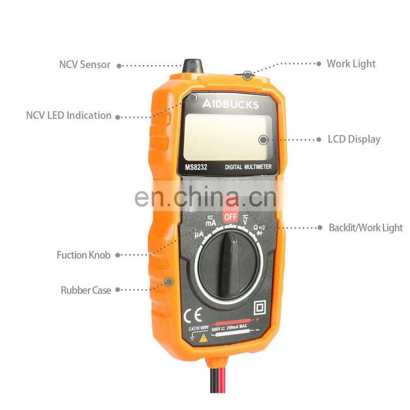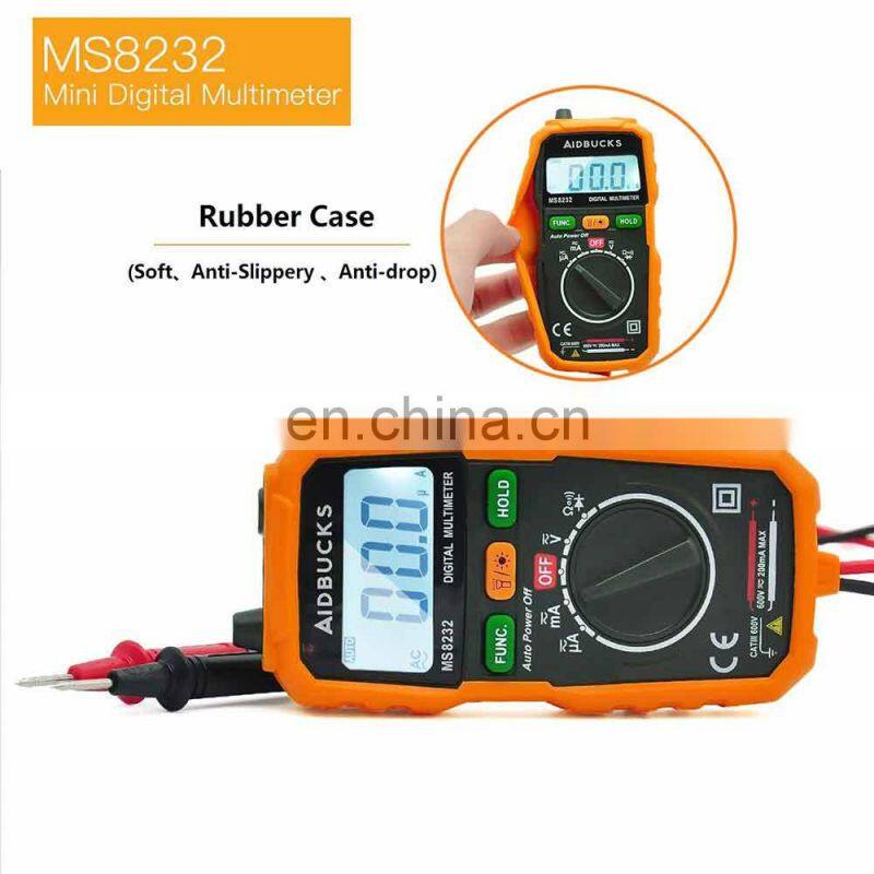 AIDBUCKS Digital Multimeter MS8232 AD DC Voltage 600V Handhold Multimeter Tester Backlight Rubber Case Smart Multimeter Digital