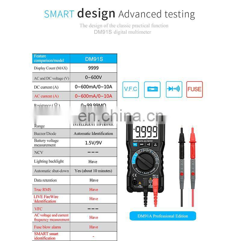 DM91S Digital Multimetro Ammeter Voltmeter Resistance Meter Voltage Diode Frequency 9999 Counts Handheld Digital Multimeter