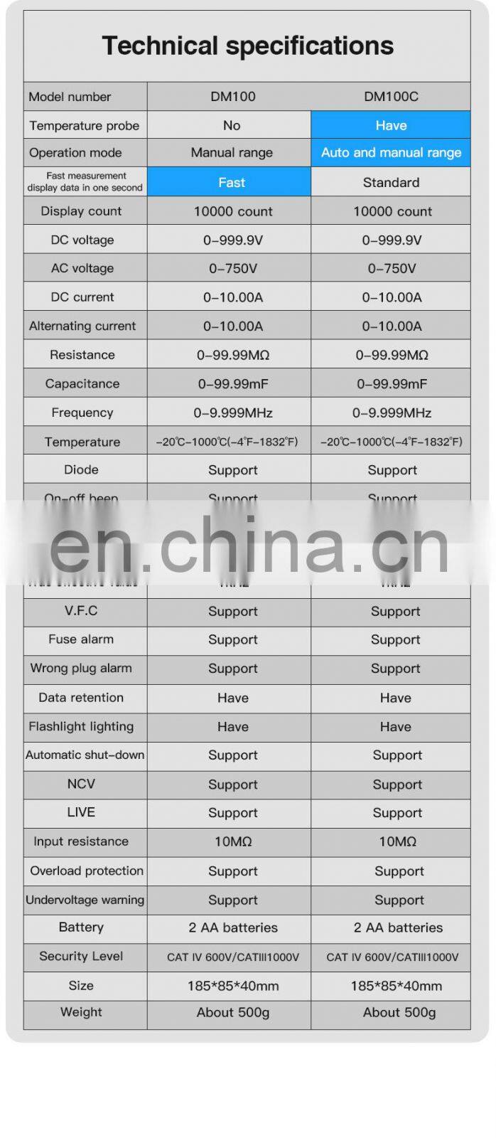 DM100A Digital Multimeter Tester Capacitance Fast Speed DC DC 10000 Counts Multimetro Digital Anti-burn Alarm Multimeter