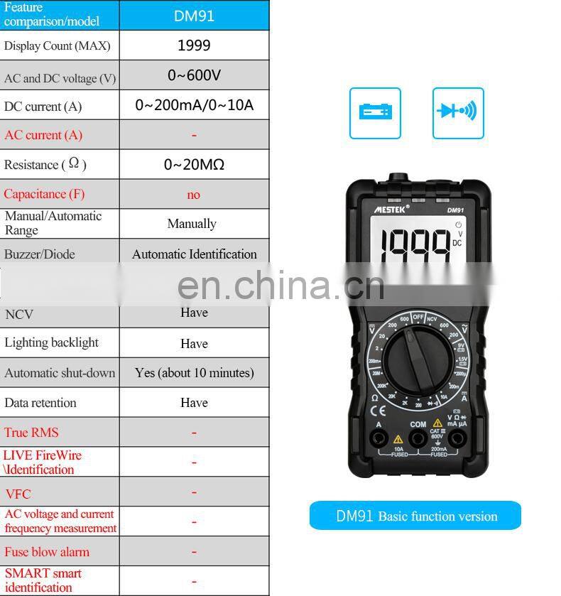 New Product Ideas Mestek Multimetro DM91 600V/10A Voltage Current Resistance Tester Pocket Multimeter Digital Multimeter