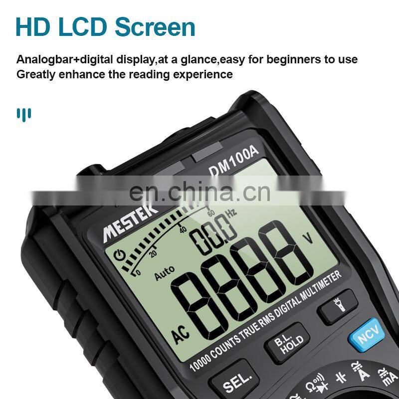 Best Selling Product Mestek Multimeter 10000 Counts DM100 1000V/10A Voltage Current Resistance Tester Digital Multimeter
