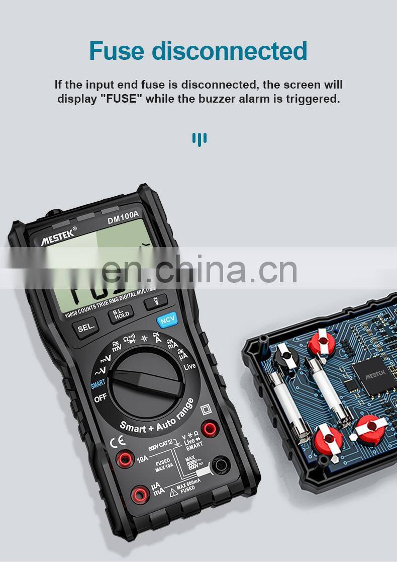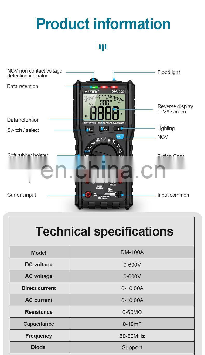Home > Products > Multimeters > DM100A Auto-Ranging 10000 Counts Display Multimeter Tester Voltage Current Capacitance Measuring Smart Digital Multimeter