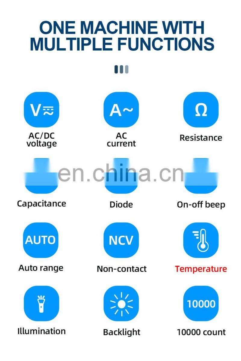Smart rang ,Auto Range,10000 Counts,AC/DC current,AC/DC voltage,Resistance,Capacitance,Tempareture