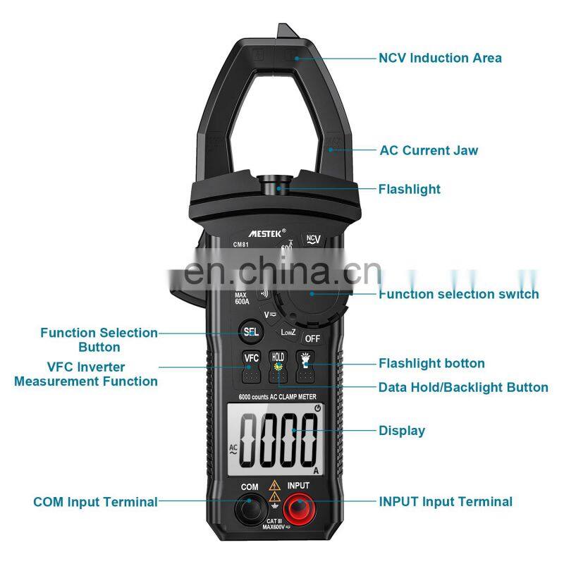 CM81 Product Clamp Multimeter Mestek 6000 Counts Digital Clamp Meter With Non Contact Voltage Connector NCV Clamp Meter