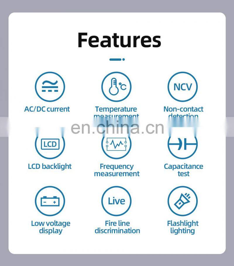 Home > Products > Clamp Meters > Digital Clamp Meter 6000 Counts AC DC Auto Range Temperature Measurement Intelligent Anti-burn NCV Electrical Clamp Meter