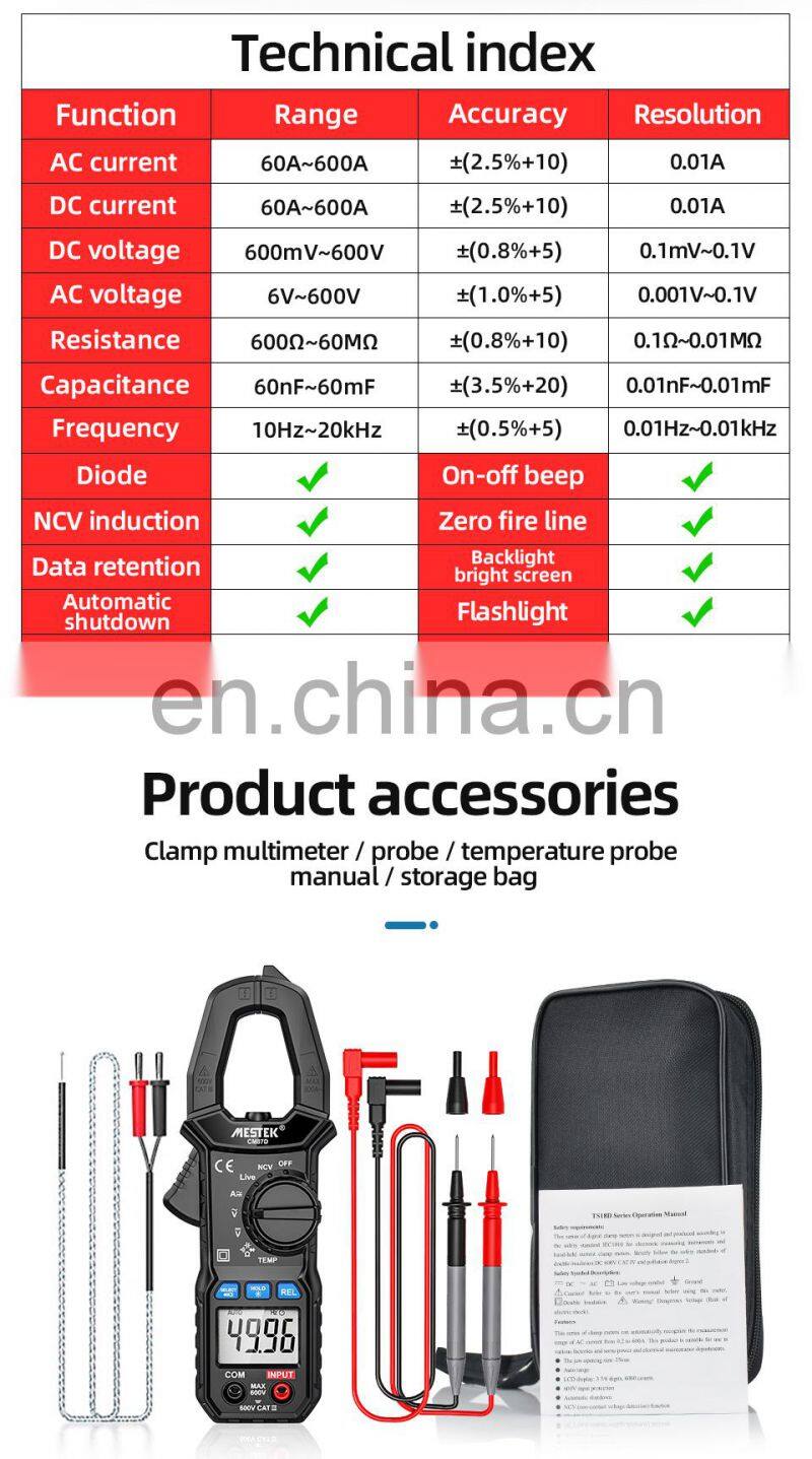 Best Selling Product Clamp Multimeter Mestek 6000 Counts Digital Clamp Meter With Non Contact Voltage Connector NCV Clamp Meter