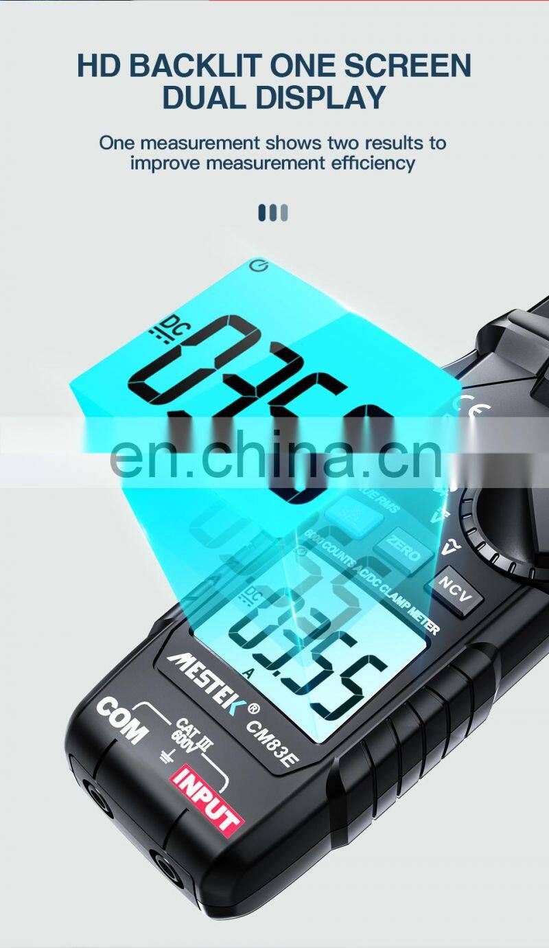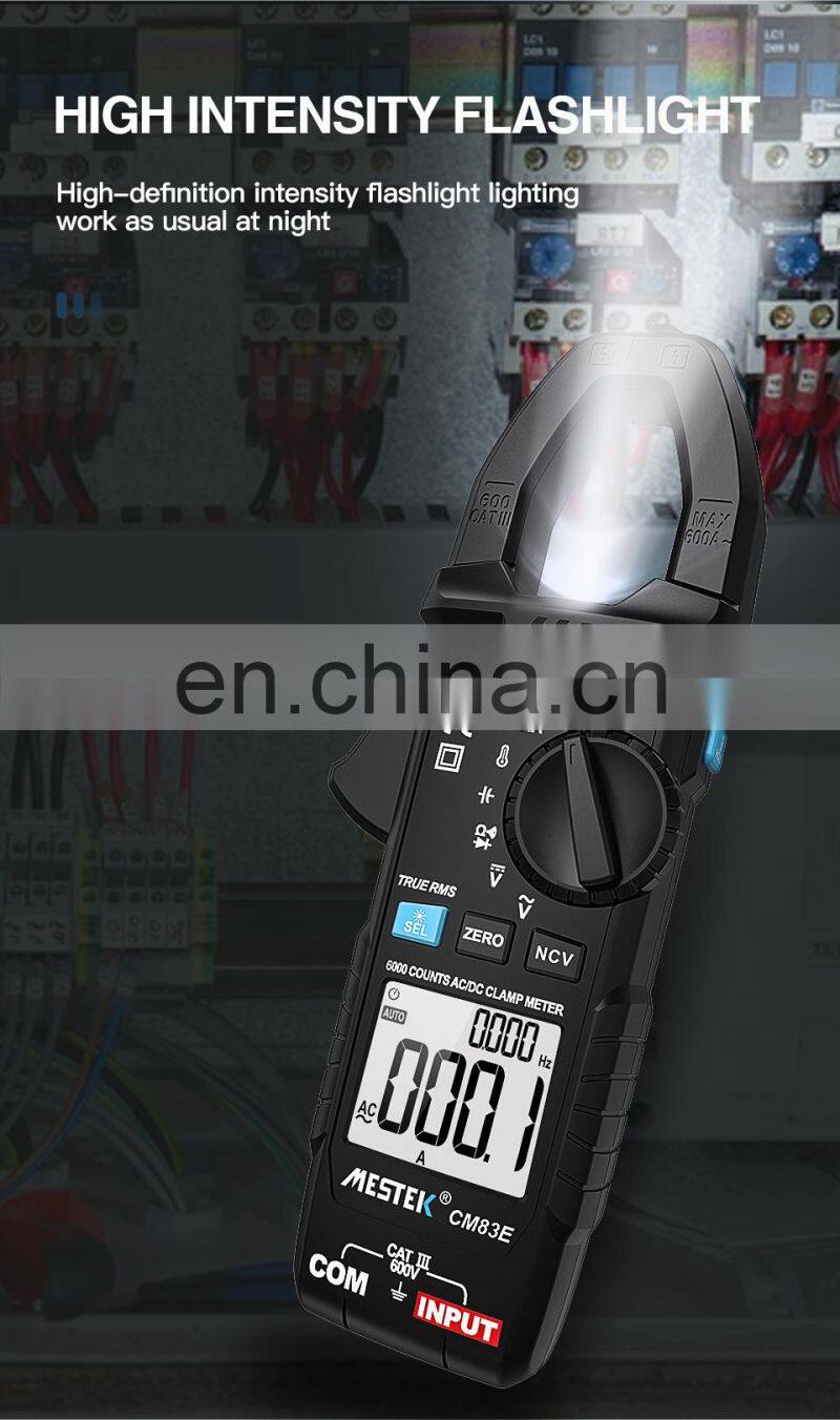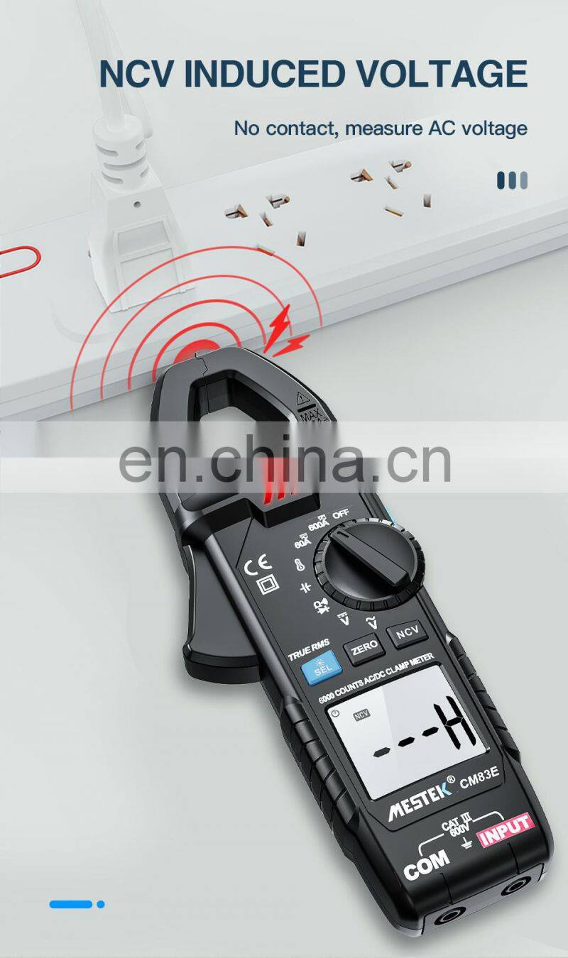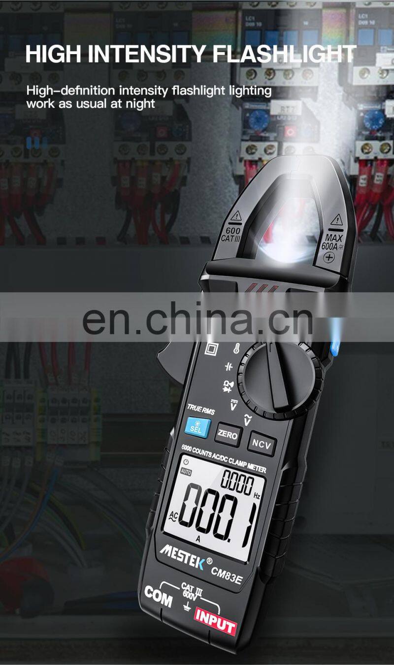 Mestek CM83E 6000 Counts AC DC Current 600A Smart Range NCV Digital Multimeter Ammeter Electrical Frequency Tester Clamp Meter