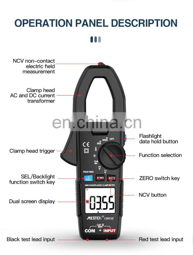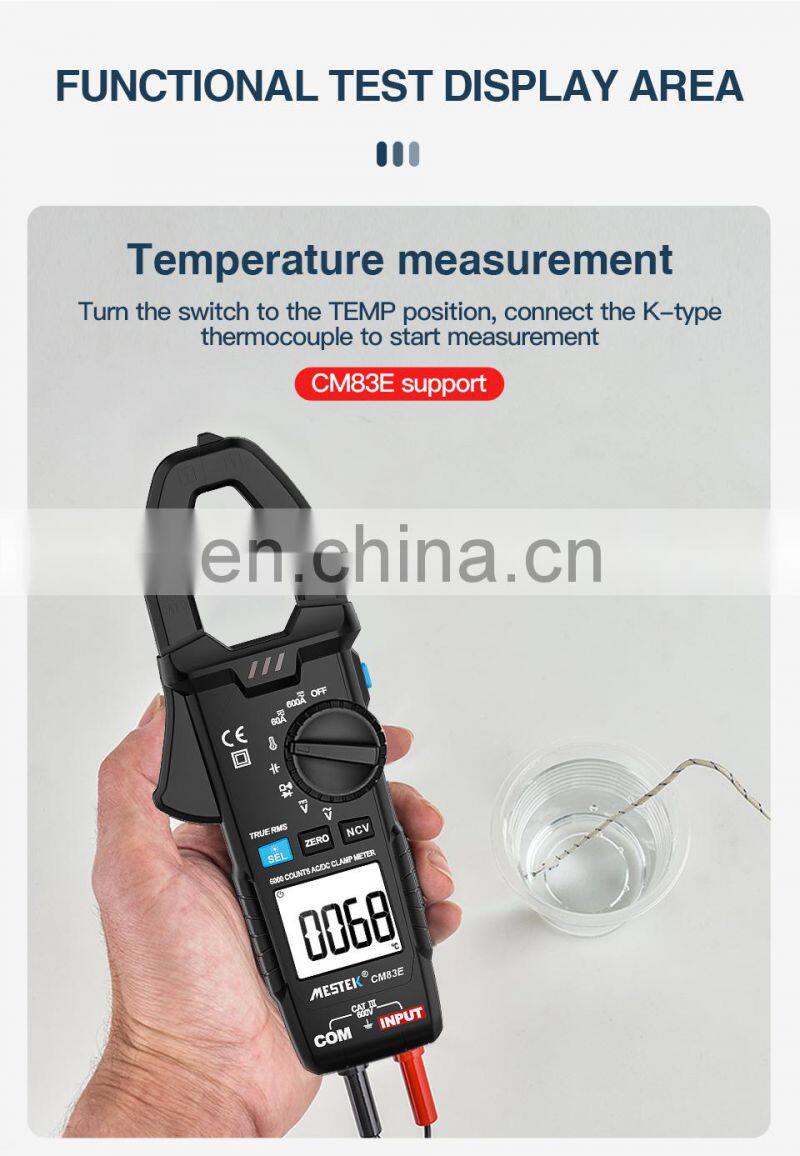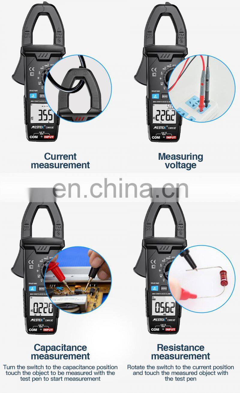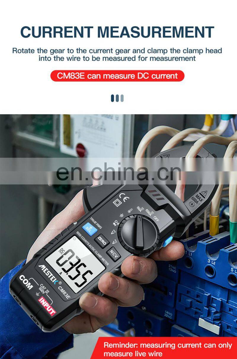 Mestek CM83E 6000 Counts AC DC Current 600A Smart Range NCV Digital Multimeter Ammeter Electrical Frequency Tester Clamp Meter