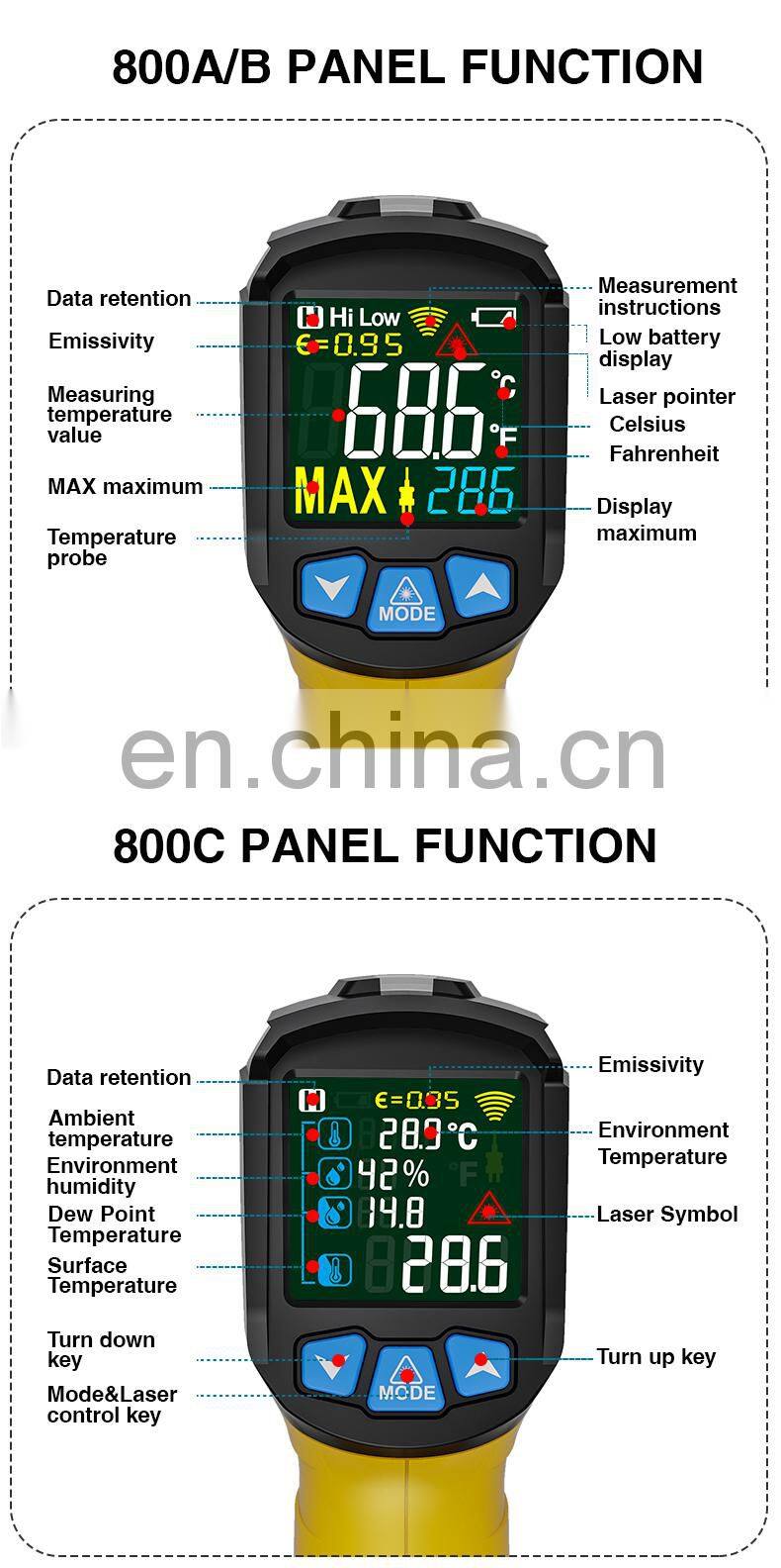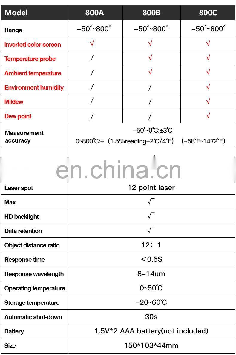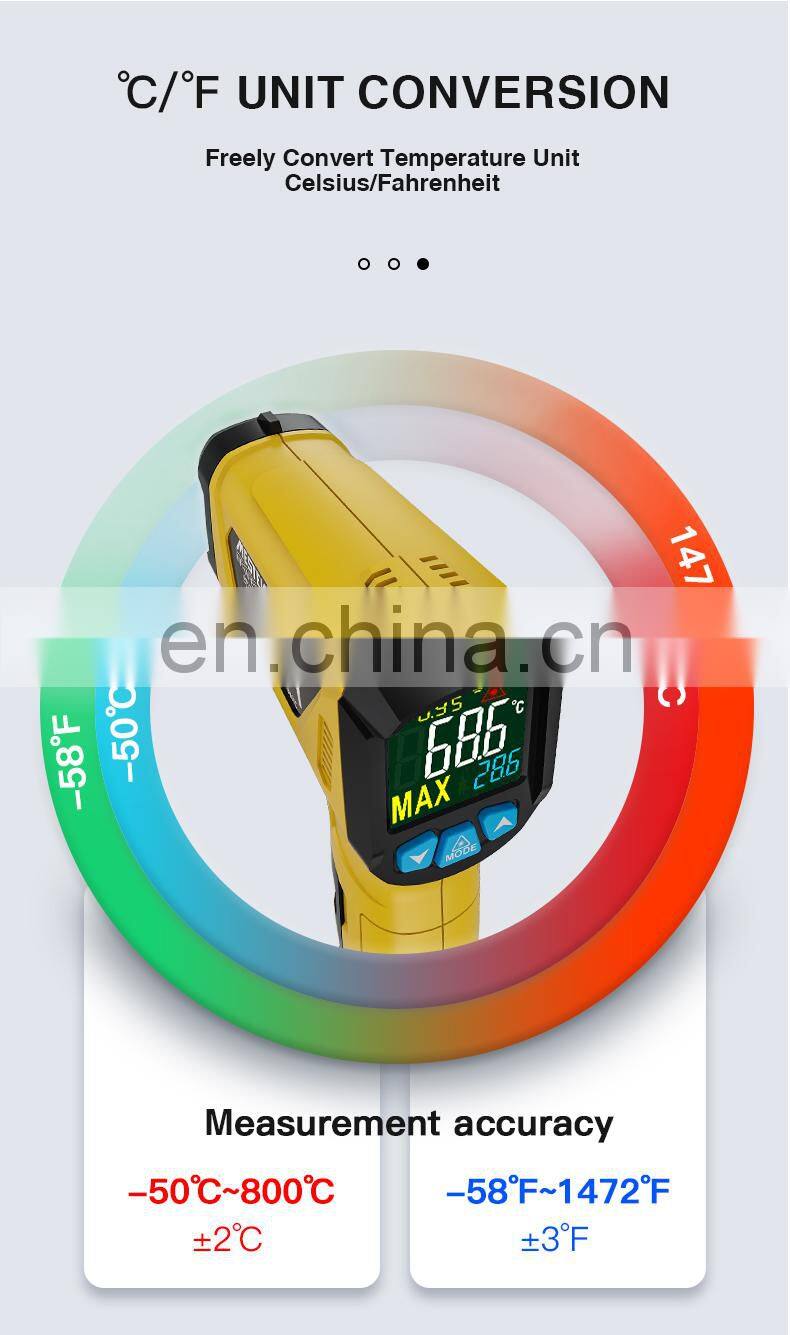 Digital Handheld -50 to 800 Degree LCD Display 2% Accuracy Gun Type Temperature Measurement Tool Industrial Thermometer