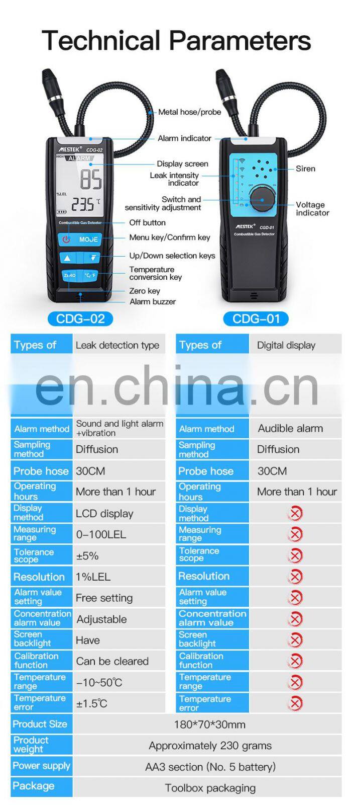 Home > Products > Enviromental Meters > MESTEK CGD02 Handheld Carbon Monoxide Meter Portable CO Gas Leak Detector Monitor Tester Gas Analyzer Combustible Gas Detector