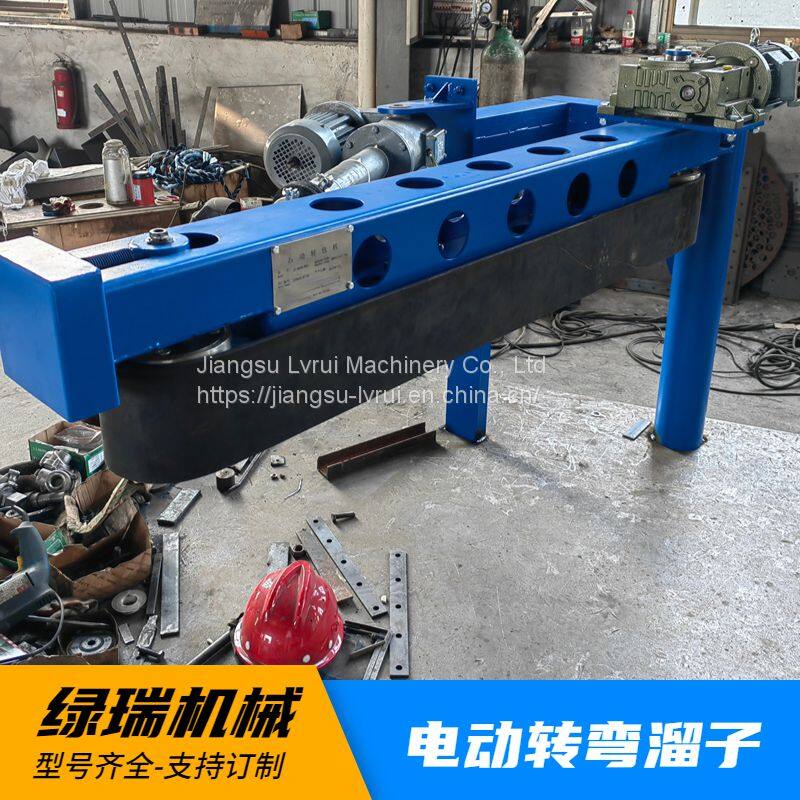 Electric turning chute (bag stopper, bag stopper, electric steering mechanism) is composed of steel frame, rotatable belt turning mechanism, electric push rod sliding chute and control system.