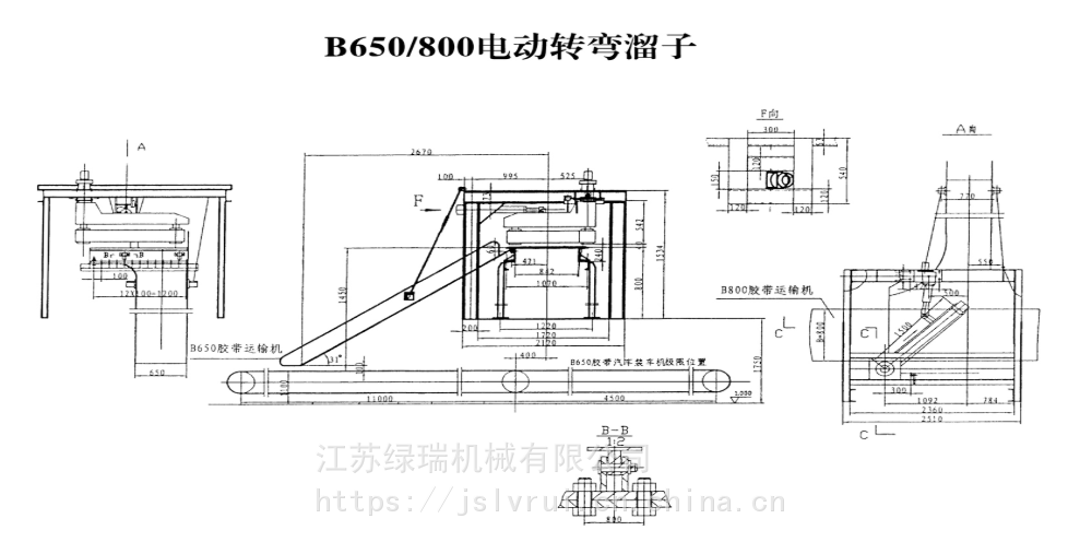1. The arrow in the a-direction view indicates that the cement bags are transported to the b650 belt conveyor by the B800 belt conveyor and the electric turning roller.