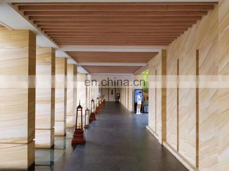 Natural Teak Wood Yellow Sandstone for Exterior Wall Cladding