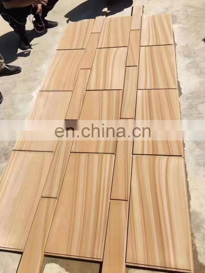 Natural Yellow Teak Wood Sandstone With Wood Veins for Paving Stone