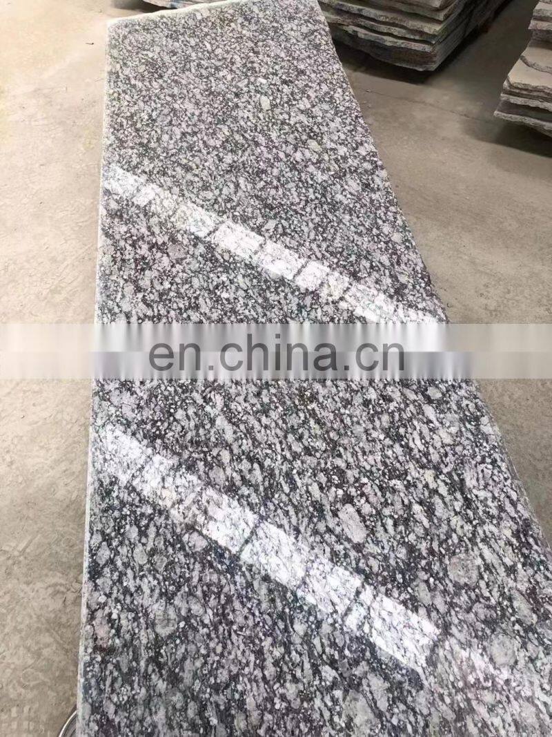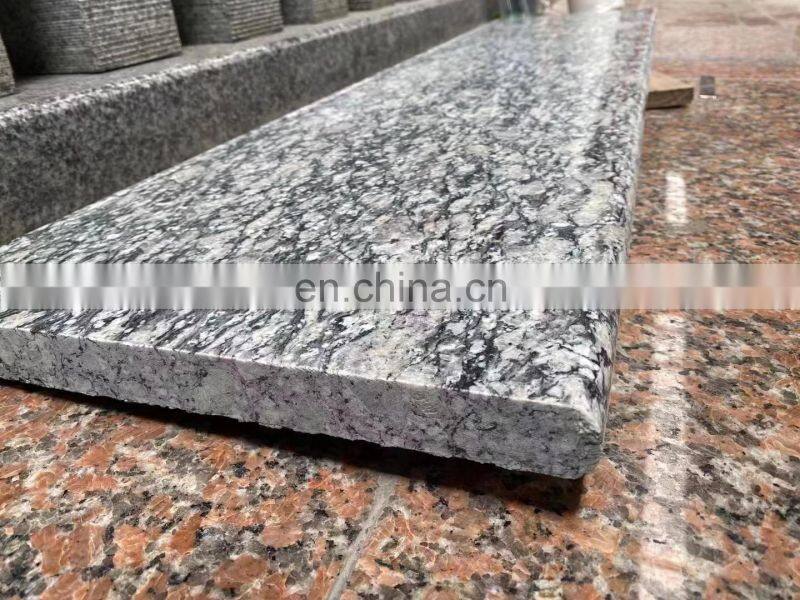 Chinese Exterior Natural Stone Wall Clading Countertop Polished Sea Wave Flower Spray White Granite Slabs