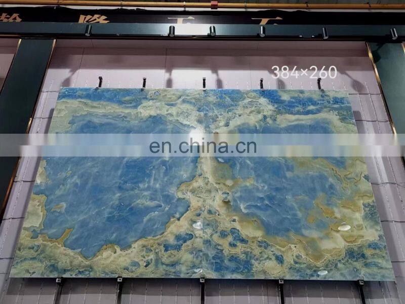 Wholesale Luxury Stone Customized Background Wall Panel Sky Blue Onyx Marble With Golden Veins Tiles
