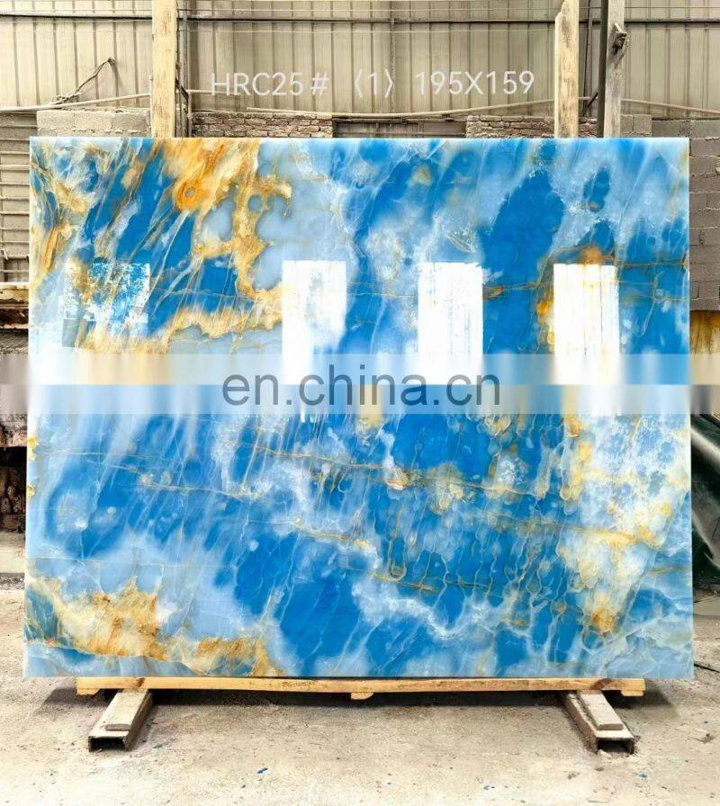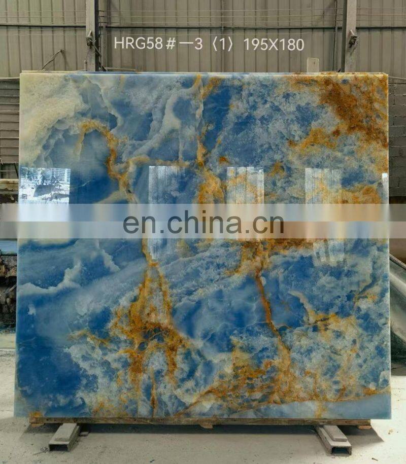 High End Natural Blue Stone Marble Onyx With Golden Veins Slabs