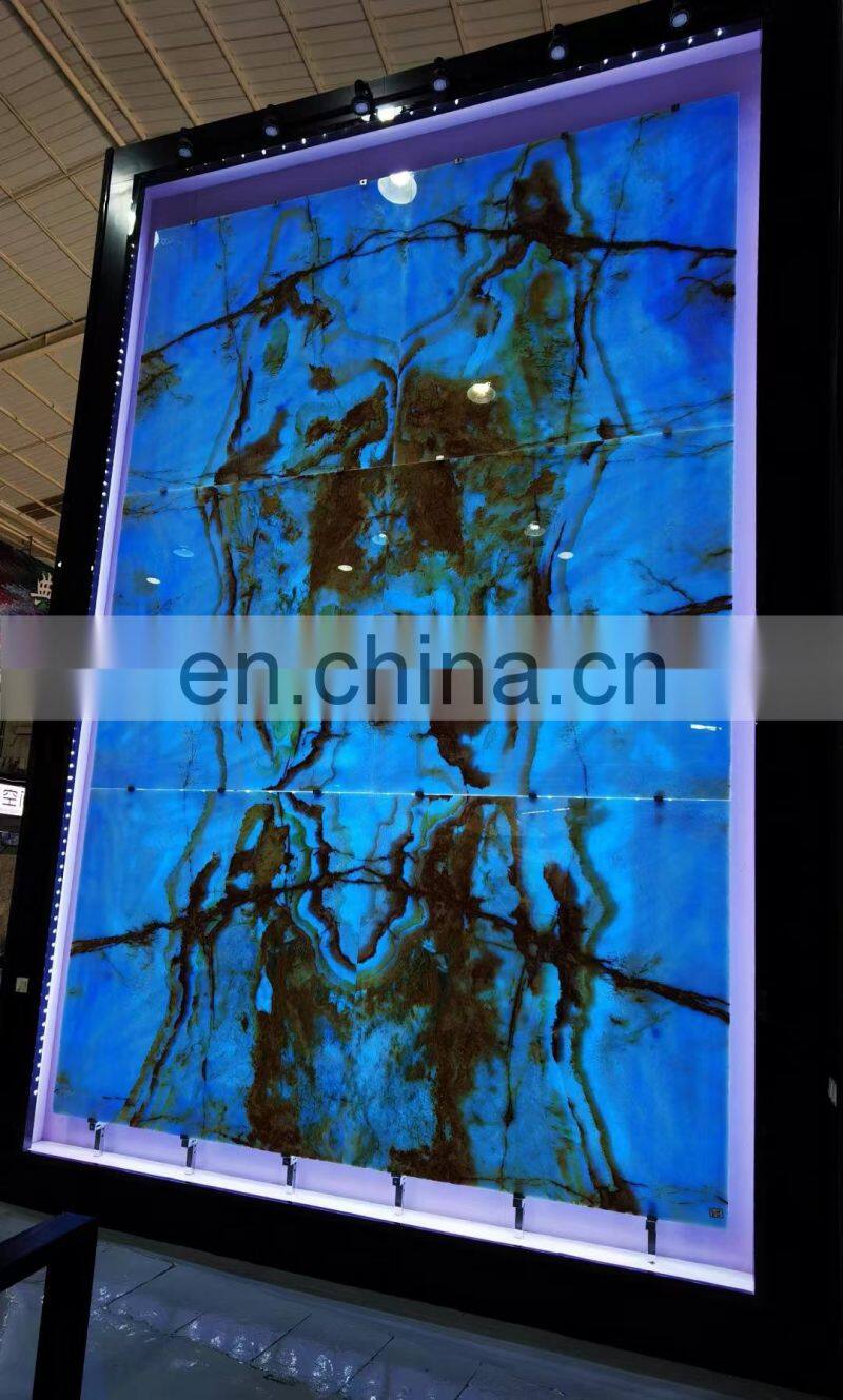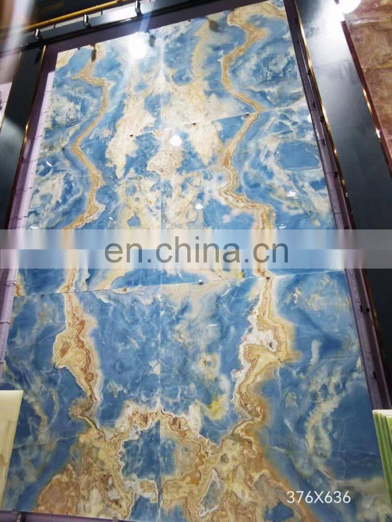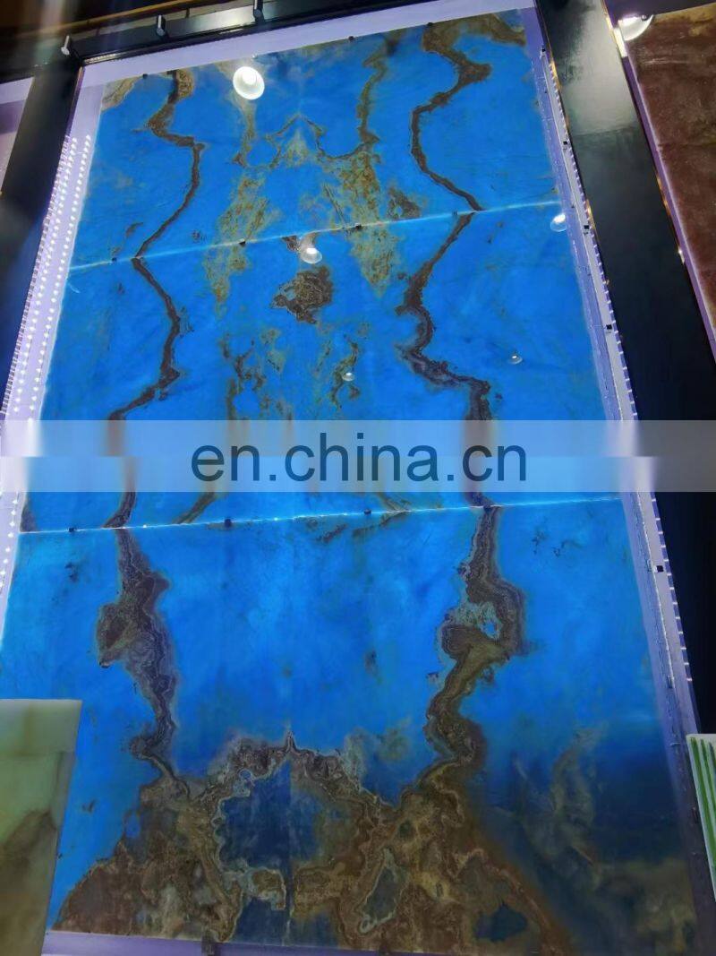 Home > Products > marble > Wholesale Luxury Stone Customized Background Wall Panel Sky Blue Onyx Marble With Golden Veins Tiles