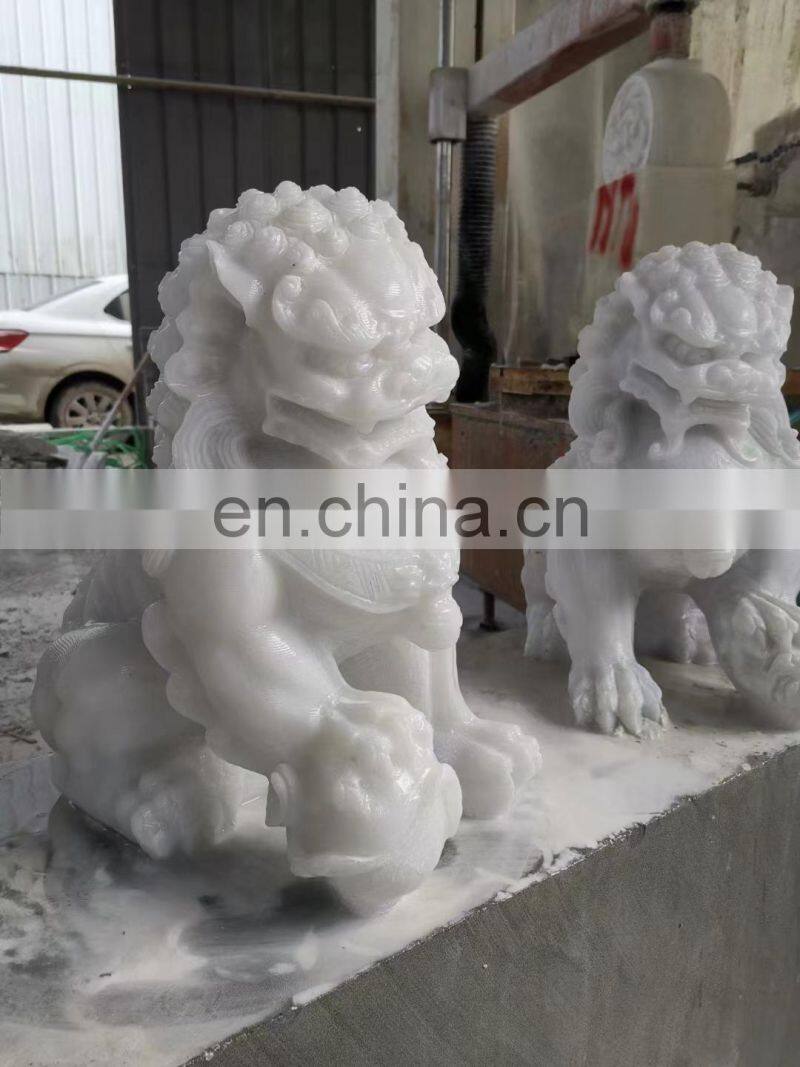 Sichuan White Jade Statue Animal Lion Marble Stone Carvings Garden Decoration Marble Sculptures