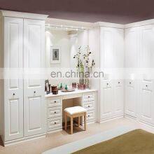 American French Luxury White Clothes Storage Full Mirror Lacquer Solid Wood Wardrobe Closet Bedroom Sets Cheap