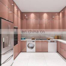 Ethiopian Imported Furniture Ready Made High Gloss Fiberglass Mini Glass Pink Kitchen Cabinet With Sinks From China