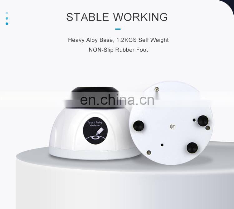 Advantage | 1.SMALL SIZE :12x9x4cm 2.NEVER SHAKE THE BOTTLE BY YOURSELF! The vortex shaker can mix most liquids in under 5 seconds at 4000 RPM. The mixer is built with tough, high quality materials to handle hard, every-day use year after year. 3.MIX WHAT YOU WANT: The mixer works with nail polishes, eyelash adhesives, paints, glues, tattoo ink, pigments and other tough liquids. It is deal for nail salons, beauty parlors, artists studios, tattoo shops, schools, businesses and at-home use. 4.LAB QUALITY FOR EVERYONE: The Joan Lab Vortex Mixer's sleek design includes a black rubber head, chemical corrosion resistant plastic body, zinc-alloy base and a powerful and efficient 12V DC brushless motor. 5.EASY-TO-USE: Set up the mini vortex mixer in under 5 minutes. Simply touch up to 50mL of any liquid to the top of the machine to mix the contents. Liquids are swirled in a vortex, not shaken, for better results. The vortex mixer's smooth exterior and compact size make it easy to clean and store | ||