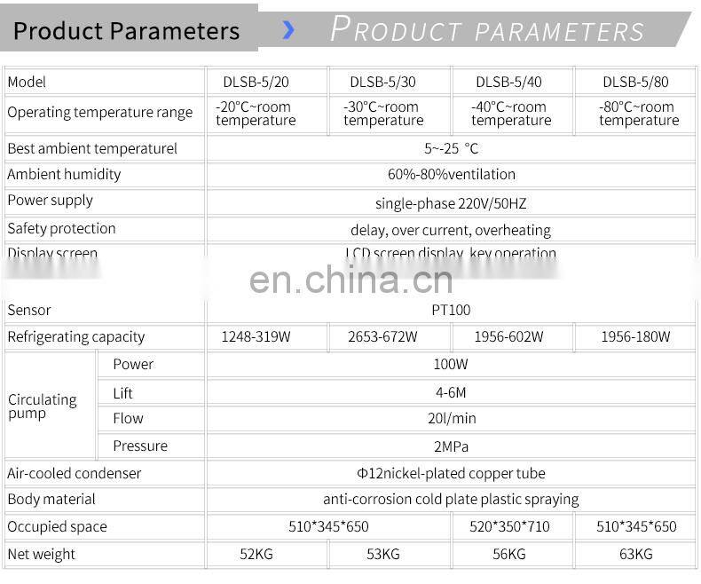 Application:Adoption of low-temperature liquid circulation equipment of compression refrigeration methods can cool the tube, the reaction bottles directly and so on to have chemical reaction under low-temperature and store chemical and biological products under low-temperature. Besides, it can also be combined with Rotary Evaporator, Vacuum Freeze-drying Box, Muti-purpose Circulating Water Vacuum Pump.