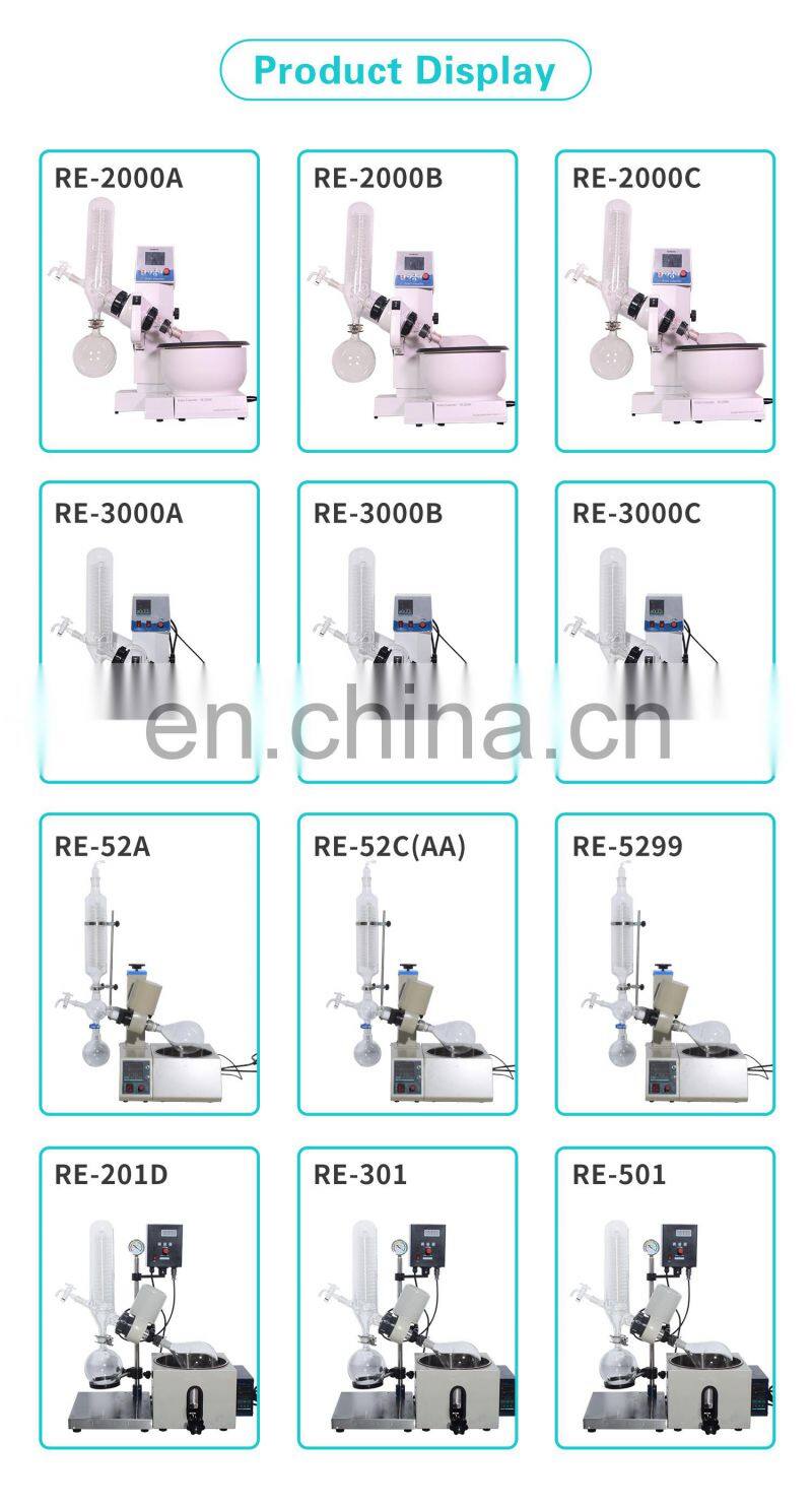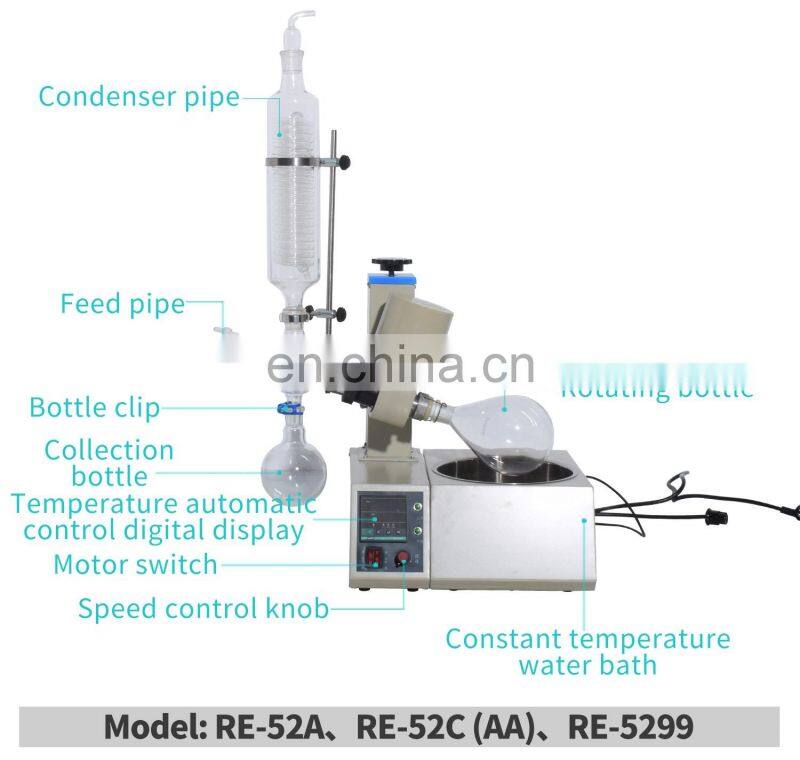Rotary evaporator use stepless speed to make the glass rotating bottle constant rotation, the material in the bottle wall to form a large area of uniform film, and then through the intelligent constant temperature water bath heat the rotating bottle uniformly,high-speed evaporation under vacuum case, after the efficient glass condenser cooling, the solvent vapor will recycle in the collection bottle.