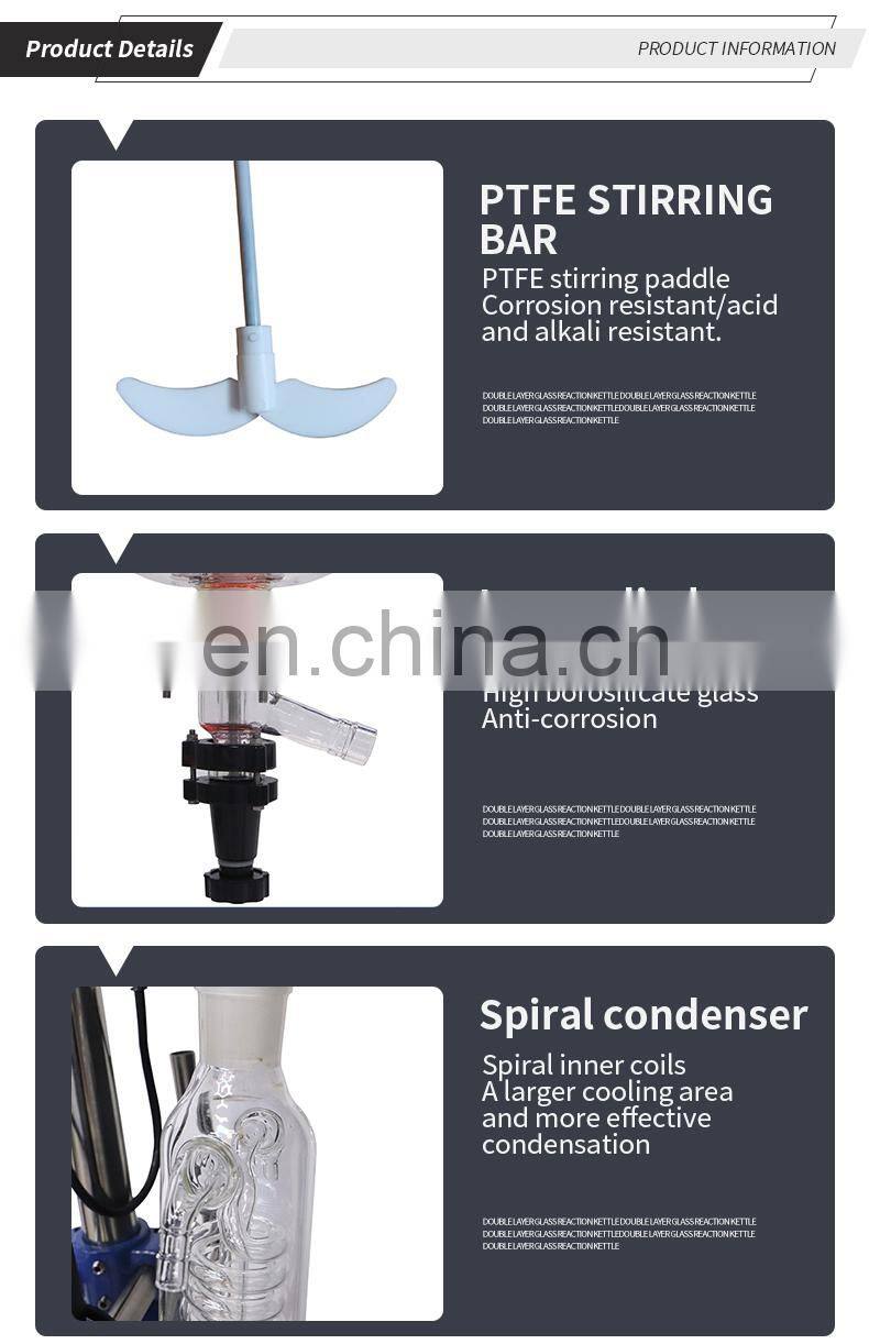 Lab Short Path Distillation Device Pyrex Double Layer Stirred 20L Glass Reactor for Chemical Lab