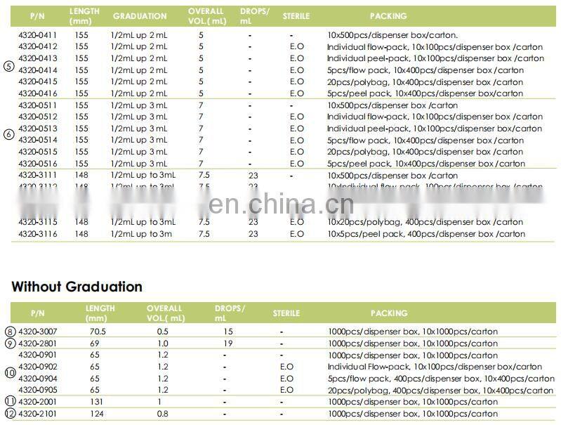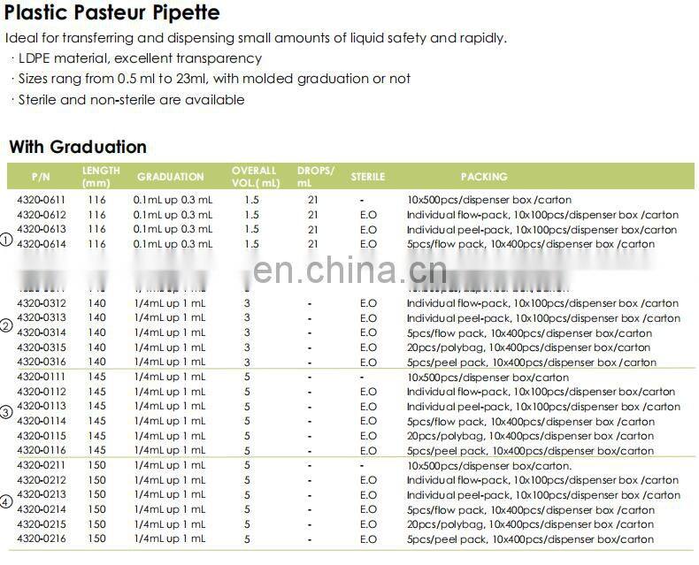 Plastic Pasteur Pipette 1.5ml 3ml 5ml 7ml 7.5ml 15ml 19ml