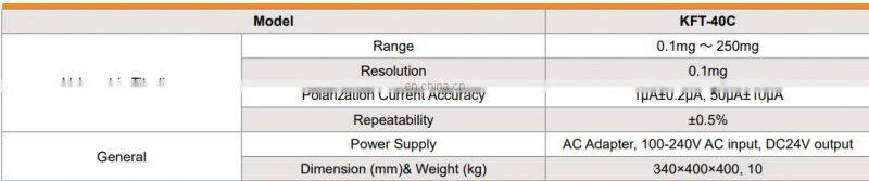 Volumetric Titration Range | 0.1mg~250mg | 0.1mg~250mg | |