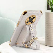 2022 New Wrist Strap Electroplated Crocodile Pattern Four Corner Fall Proof Leather Phone Case For Iphone 8 Plus X Xr 13 14 Pro