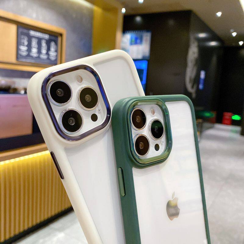 Simple Solid Color For IPhone 13/14 Pro Acrylic Cellphone Accessories Phone Cases 11Pro Max Electroplated Lens Frame 12/XS Case