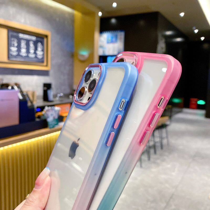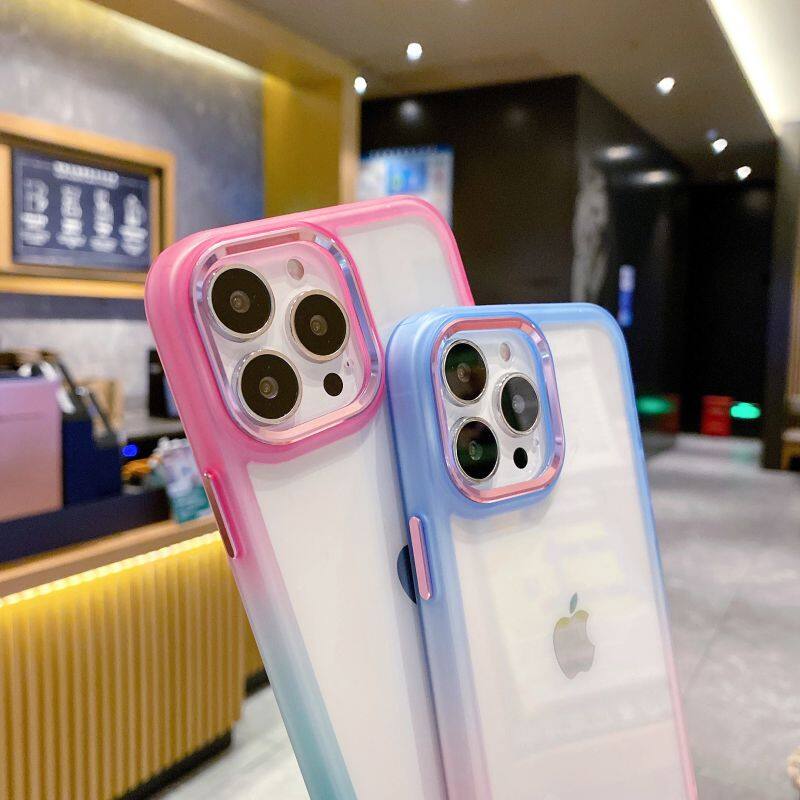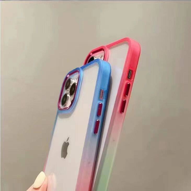 Hot Sale Fresh Two Color Gadient 14/12/11 Pro Max Perfect Fit Ultra Thin Clear Transparent Tpu For Iphone 13/7 Mobile Phone Case