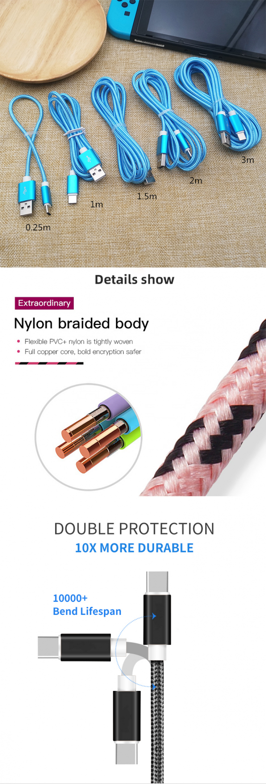 C to Type c Travel is Convenient Nylon Braided Fast Charging Cable Multi Function Cable Type C Usb Cable