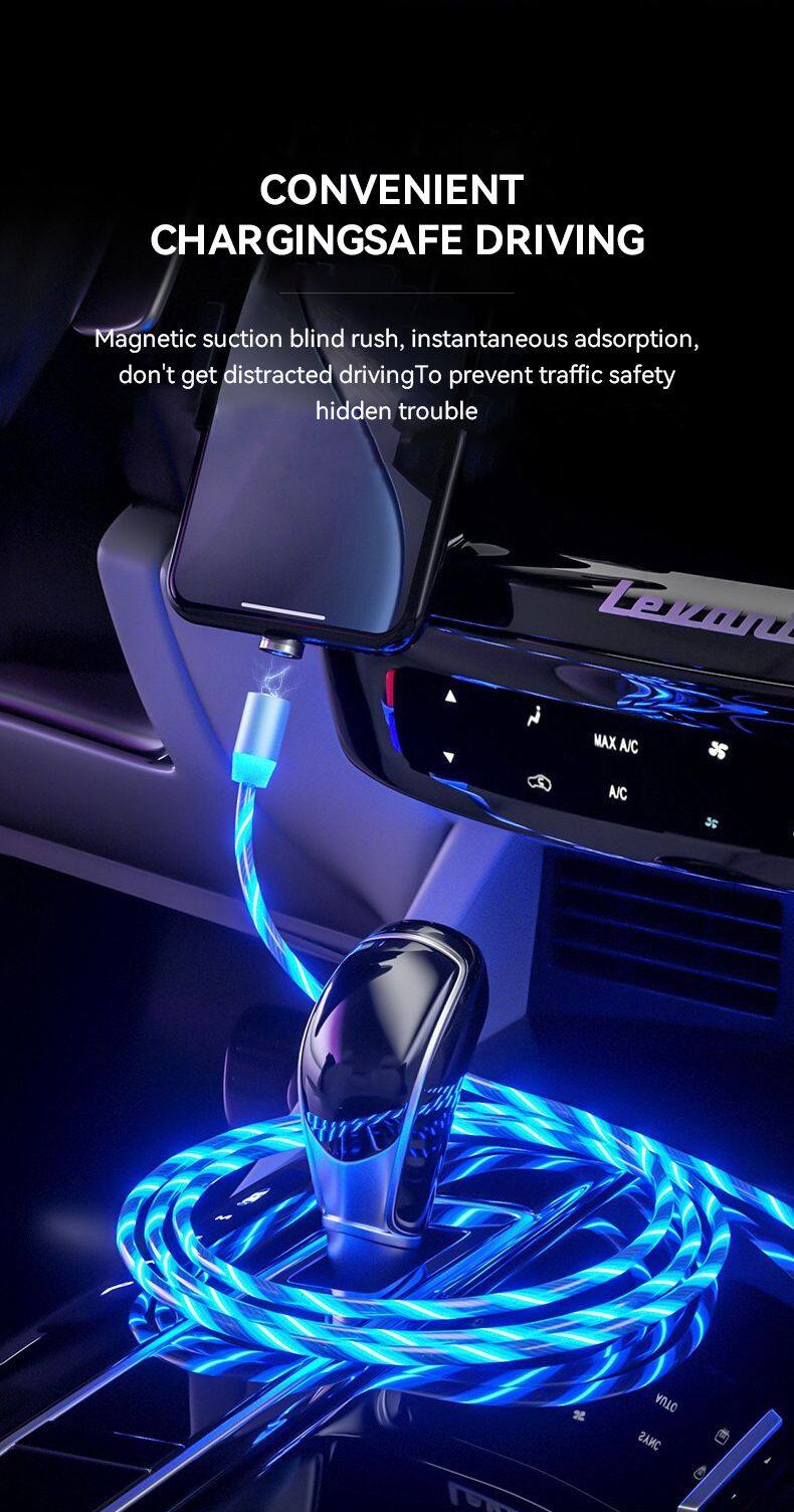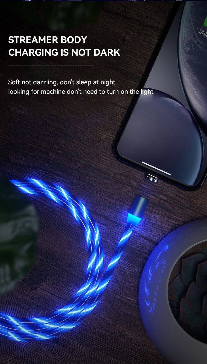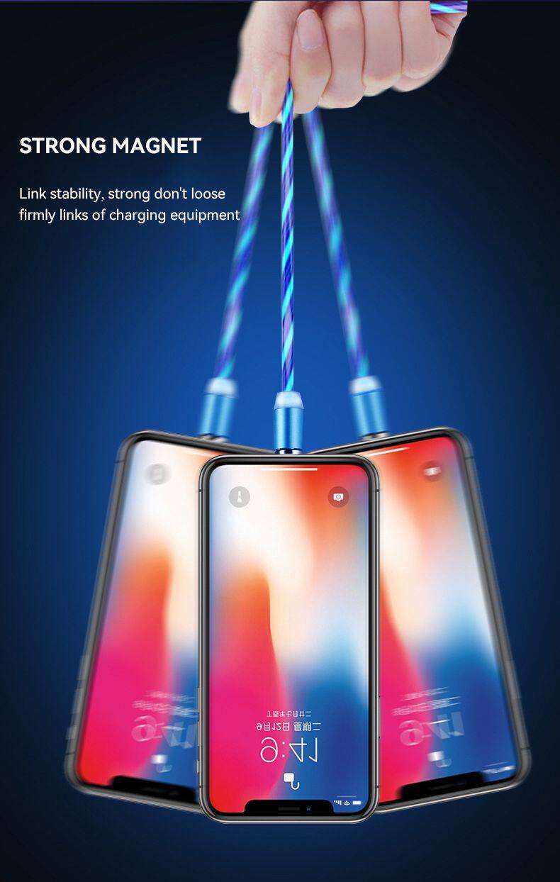 3 in 1 Magnetic Fast Charging Usb Cable Flowing Light Phone Accessories Cable Usb Led Luminous Micro Lighting Data Cables
