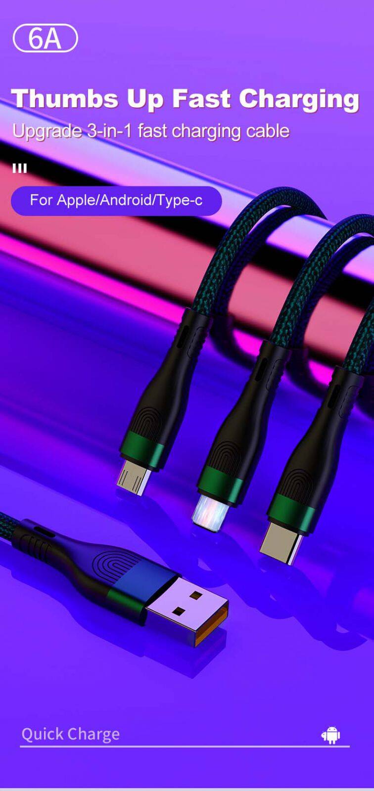3 in 1 Usb Cable in Computer Cables & Connectors Super Fast Charger Cable 6a 66W Data Line for Mobile Phone