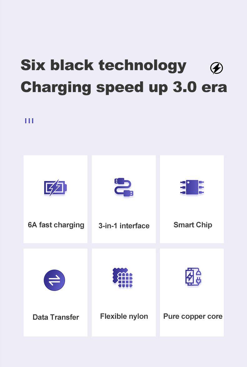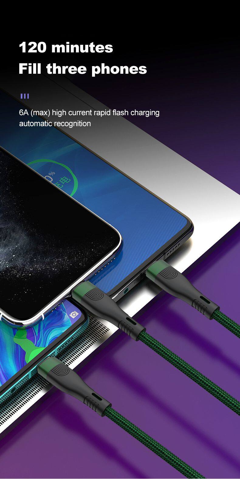 3 in 1 usb cable in Computer Cables & Connectors super fast charger cable 6a 66W data line for Mobile phone