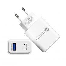 PD 20W WALL CHARGER, EU PLUG, WHITE RETAIL BOX PD 20W TYPE-C Charger kit, EU/US plug