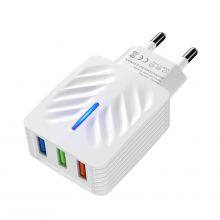 High Quality EU US Plug 3USB Port LED Mobile Phone Charger Suitable for Many Mobile Phones USB Charger