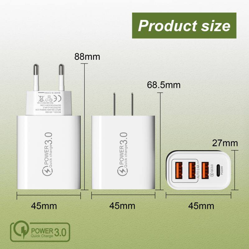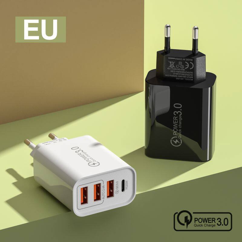 3 Usb Ports+pd 20w Eu US Home Travel Wall Chargers Adapter For Samsung s8 s9 S10 for Iphone 7 8 11 12 13