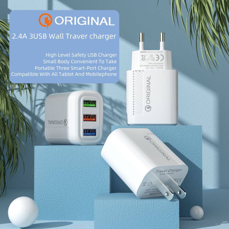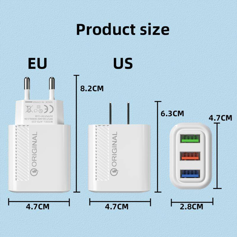 2022 High Quality 3USB Port Wall Charger QC 3.0 EU US Plug Phone Charger Adapter