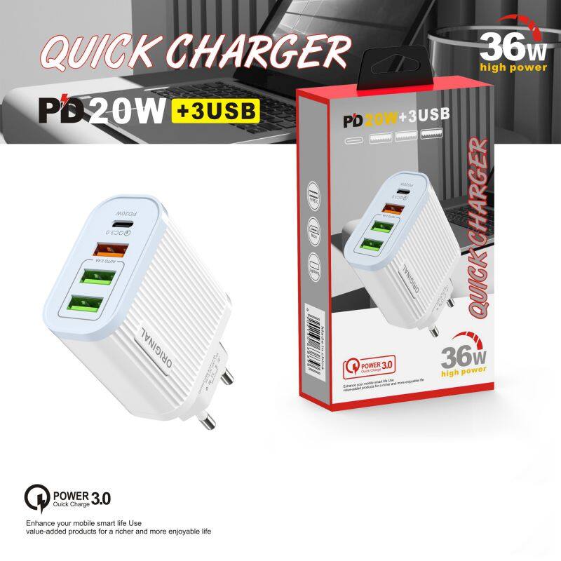 Amazon Hot Sale 3+pd Port Fast pd Charger USB Wall Charging Mobile Phone Charger For Smart Phone