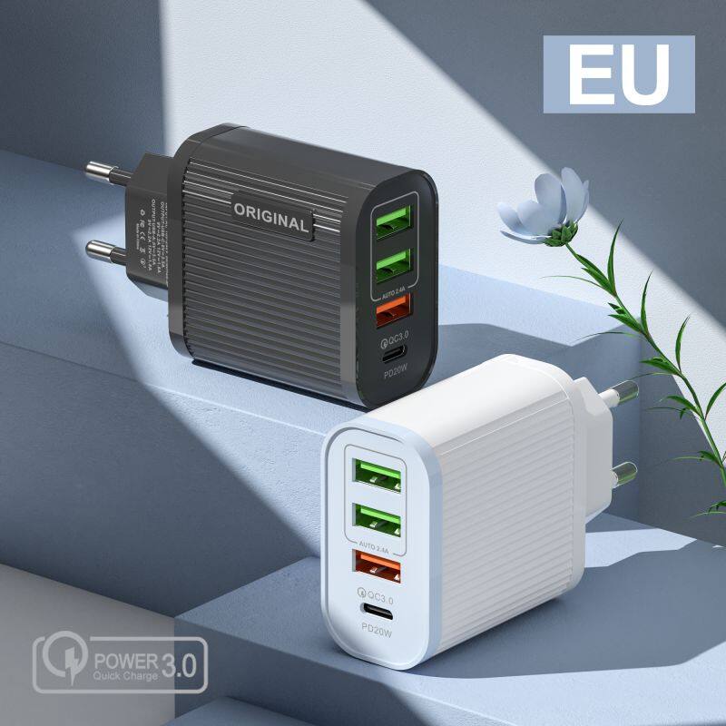 Wholesale US EU Plug PD 20W+3USB Fast Wall Travel Universal Charger for Smartphone Charging