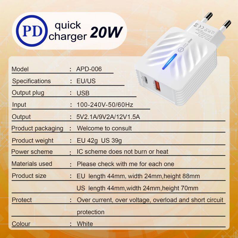 PD+ Usb-C Quick 20W Mobile Phone Cargador US EU Dual Ports Usb c 20W Fast Charger for Huawei IphoneNegotiableMOQ: 1