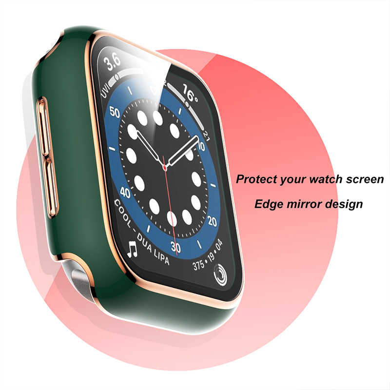 Hot Sale Glass Full Cover Plastic Protective Cases for Apple Watch 6 SE 5 4 3 2 Shiny Zircon PC Frame Bumper Cover for IWatch