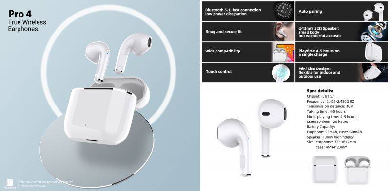 TWS Earphones PRO 4 Wireless Bt Earbuds